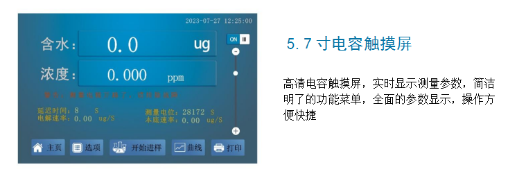 - 系統實時檢測環境中的水分,精準扣除漂移,采用實時動態阻抗法判定滴定終點,測量結果更精準